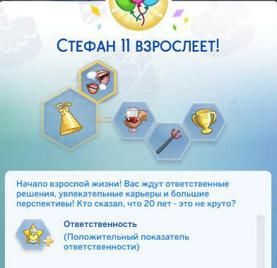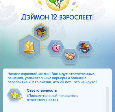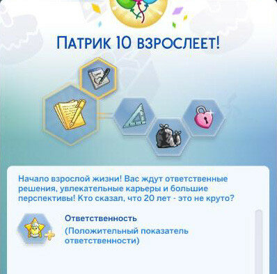Если в игре в один день у Вас взрослеют несколько персонажей, то черты характера и жизненные цели им нужно давать в порядке получения. Например, первым взрослеет Петя, бросаем для него кубик, получаем черту. Второй взрослеет Маша, бросаем для неё кубик, получаем черту. Черту Пети нельзя дать Маше и наоборот.