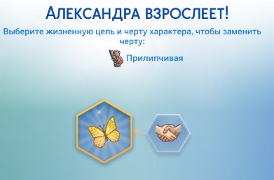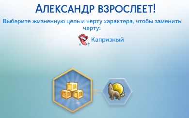 Если в игре в один день у Вас взрослеют несколько персонажей, то черты характера и жизненные цели им нужно давать в порядке получения. Например, первым взрослеет Петя, бросаем для него кубик, получаем черту. Второй взрослеет Маша, бросаем для неё кубик, получаем черту. Черту Пети нельзя дать Маше и наоборот.